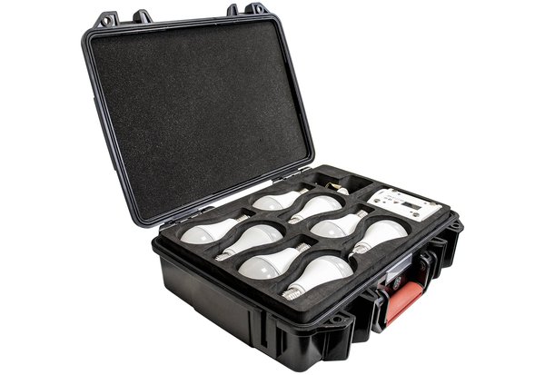 The Astera FP5-NYX 8-Bulb Basic Kit is a full LED lighting kit designed to produce professional color-tunable lighting. All eight LEDs have built in receivers, as well as RF and Bluetooth modules. This rental package offers the bare-bone basics, but still provides everything you would need for your production, like accessories used to modify the LEDs and power them.