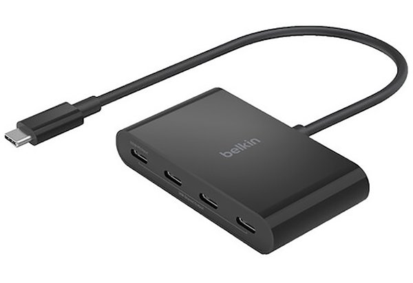 The Belkin 4-Port USB-C Hub is a compact device that connects to your laptop, PC, or tablet to provide you access to four USB-C ports. Key features include: