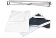 Two Fabrics. The kit includes a white/black reversible fabric to use as a reflector and gobo respectively, as well as a 1/2 diffusion fabric that you can use as a shoot-thru or scrim.