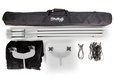 Portability. You’d typically need a large vehicle to move a frame this size, but the Butterfly Frame Bundle folds up to a mere 48 × 5.5 × 3.5 inches for easy transport with your other gear. It’s so compact that one person can carry it and set it up.