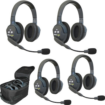 The Eartec UL4D UltraLITE 4-Person Dual-Ear Headset System is a kit designed for production crews that prefer wireless, hands free communication. Key features include:
