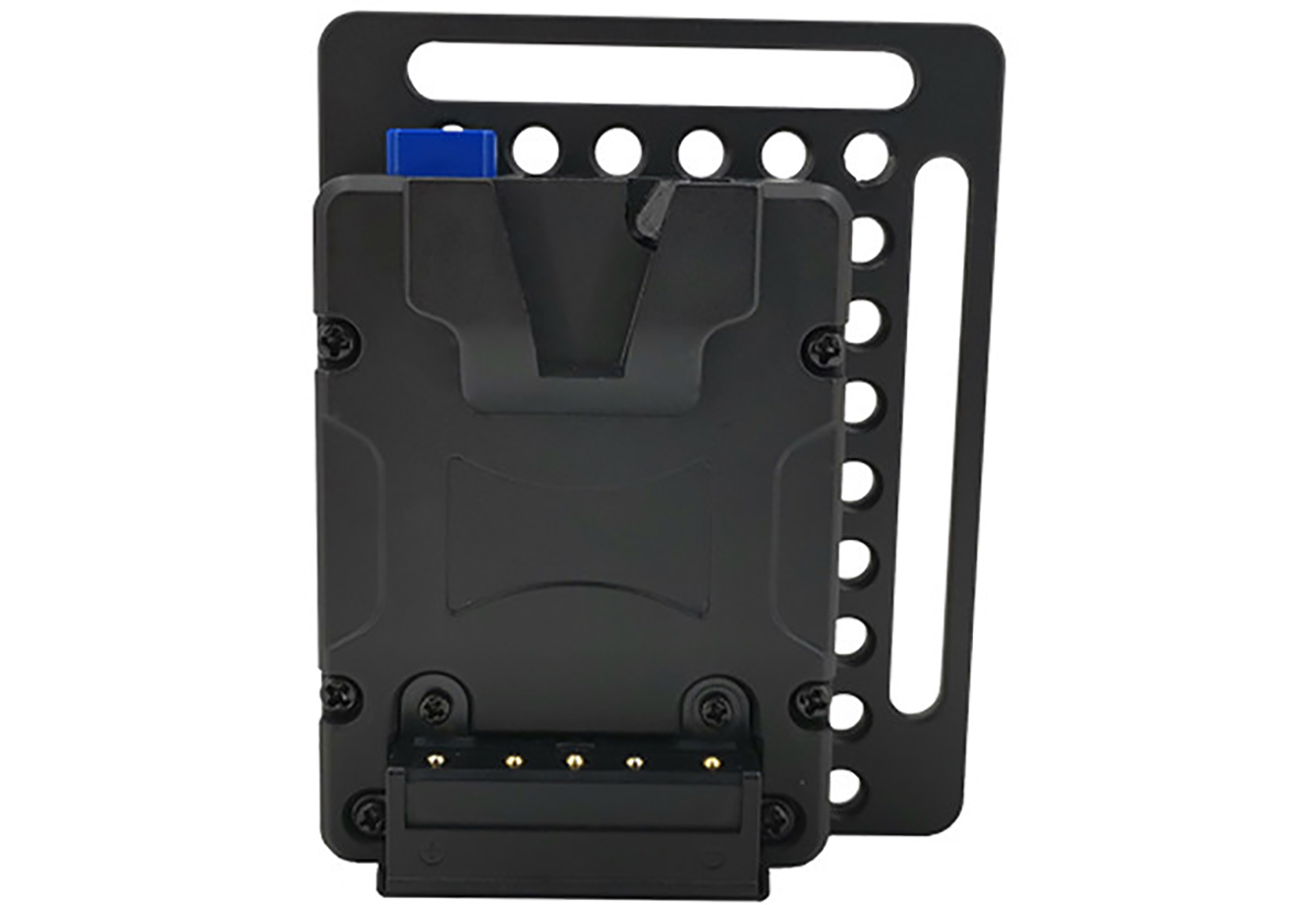 Designed for Fxlion NANO batteries and compatible with third-party micro V-mount batteries, the NANO V-Lock Camera Cage Plate attaches to a cage and provides a battery plate with a D-Tap port for camera power. Included are a battery plate and mounting plate with 1/4"-20 screws for attaching to a cage. The battery plate will support standard V-mount batteries as well, but it’s compact and not designed for them. Key features include:
