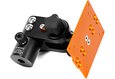 The Inovativ Pro Monitor Mount mounts on industry standard 5/8" (Baby) pins and supports monitors with a 100 × 100 VESA mounting pattern. The sturdy mount is made from 6061 aluminum and stainless steel components and is anodized black and orange. The design of the mount allows you to freely rotate the monitor and lock it in either horizontal or vertical orientation. The mount also features a lockable-tilt axis. It features a 3/8"-16 threaded accessory mounting hole at the top of the mount that allows you to add optional accessories such as a baby pin adapter or articulating arm.