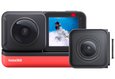 Modular Action Cam with 360° Camera System. The Insta360 ONE R Twin Edition is a key configuration of the modular Insta360 ONE R camera that includes the Core Module, 4K Wide-Angle Mod, Dual-Lens 360 Mod, and Battery Base. The Core Module rests on one side of the Battery Base, and you can swap in the 4K Wide-Angle Mod or Dual-Lens 360 Mod as needed. This rental also includes a Mounting Frame that fits any configuration of this camera and allows you to use the camera underwater down to sixteen feet.