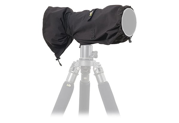 Maximum Protection. The LensCoat RainCoat RS (Large) offers protection from rain, snow, and other adverse weather conditions for camera/lens combinations up to 21 inches in length, offering an additional 6 inches of protection compared to the LensCoat RainCoat RS. It features drawstring closures at each end, allowing nearly universal compatibility with any DSLR/lens combo that falls within the size limit. There’s a velcro lens strap that helps size the RainCoat to provide the best fit possible, as well velcro running along the underside of the cover to allow tripod mounting.