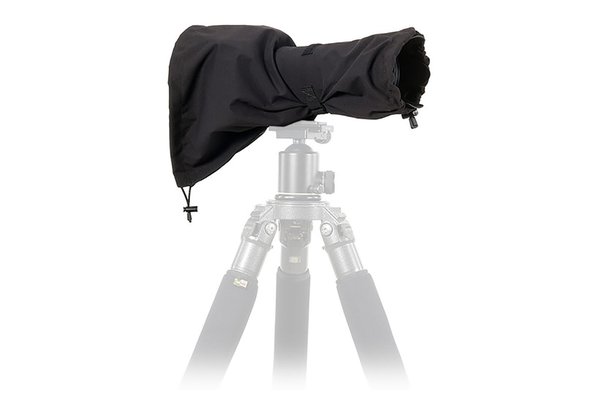 Maximum Protection. The LensCoat RainCoat RS offers protection from rain, snow, and other adverse weather conditions for camera/lens combinations up to 15 inches in length, which means it’ll cover a DSLR with a 70-200mm f/2.8 or 300mm f/4 nicely. It features drawstring closures at each end, allowing nearly universal compatibility with any DSLR/lens combo that falls within the size limit. There’s a velcro lens strap that helps size the RainCoat to provide the best fit possible, as well velcro running along the underside of the cover to allow tripod mounting.