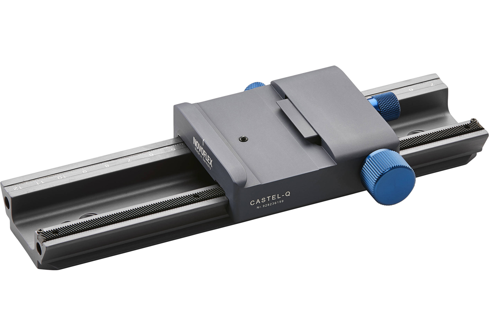 The Castel Q is a heavier-duty macro focusing rail with a built-in Arca-Swiss quick-release mount. Key features include: