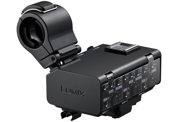 Magic Mic. Add this Panasonic DMW-XLR2 Microphone Adapter to the hot shoe of your Panasonic GH7 for stable, durable mic mounting. This adapter consists of two parts- the mic mount, and the control panel adapter unit. On the control panel, you’ll find a variety of switches and dials for your recording needs, two XLR audio inputs, and a 3.5mm stereo mini jack input.