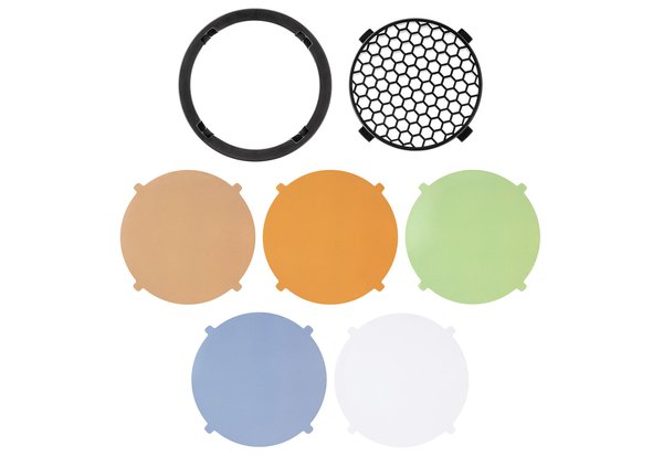 The Westcott FJ80 Magnetic Grid and Gel Pack was designed to allow quick and easy light modifications to the Westcott FJ80 Universal Touchscreen 80Ws Speedlight. This package features a magnetic design that allows for quick alterations to to the FJ80s light output, and includes a window green filter, color temperature blue (CTB), color temperature orange (1/2-CTO) and (3/4-CTO), and diffusion gels, giving you more control to this versatile lighting system. Use the Honeycomb grid to shape light with minimal fall-off and give the light a defined edge. Using the grid will also narrow your light beam, to help control light spill. The gels can be used to create dramatic effects or change the color of backgrounds.