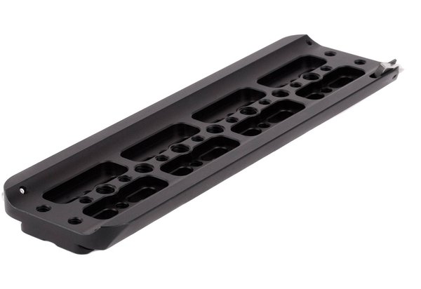 Lovey Dovey. Add this Wooden Camera 8" Safety Dovetail to your rig for safe and secure camera attachment. A stopper screw on one end and a safety latch on the other end prevent your camera from accidentally detaching, while the threaded 1/4-20 and 3/8-16 holes allow for more accessory and tripod attachments. This plate can even be added to a shoulder pad for custom handheld configurations.
