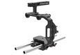 This Blackmagic Unified Base Accessory Kit prepares a BMPCC 6K Pro for 15mm rod accessories, adds threaded 1/4" & 3/16" mounting points, and provides a top handle. Key features include: